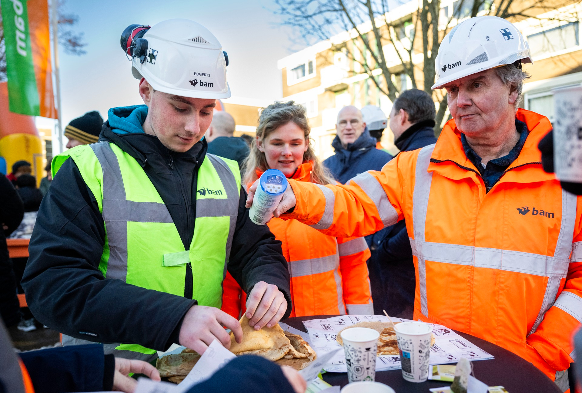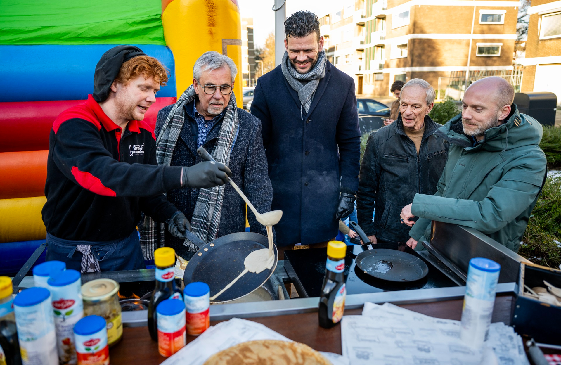 Samen met de bewoners van de Bongerd en Wingerd vierden we een gezellig start bouwfeest. Heerlijke pannenkoeken, warme chocomel met slagroom, een springkussen én het zonnetje droegen bij aan de feestelijke sfeer.